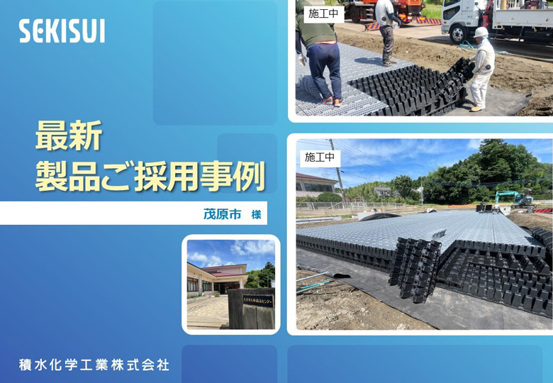 五郷福祉センター駐車場整備工事において、クロスウェーブをご採用。設置状況見学会では、茂原市長をはじめ多数の方にクロスウェーブの軽さを実感していただき、現場レポートのインタビューにもご協力いただきました。また「茂原市ゼロカーボンシティ宣言」を受けて、サステナビリティカタログも新たにご提示。