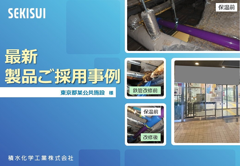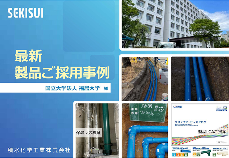 第1住宅棟空CDE棟・集会所機械設備工事、学び交流プラザ(交流アリーナ)空調設備整備工事において、クウチョウハイパーCH、スーパーエスロメタックスFC、耐火プラAD継手SGタイプ、エスロハイパーAWをご採用。サステナビリティカタログ&製品LCAデータも新たにご提示