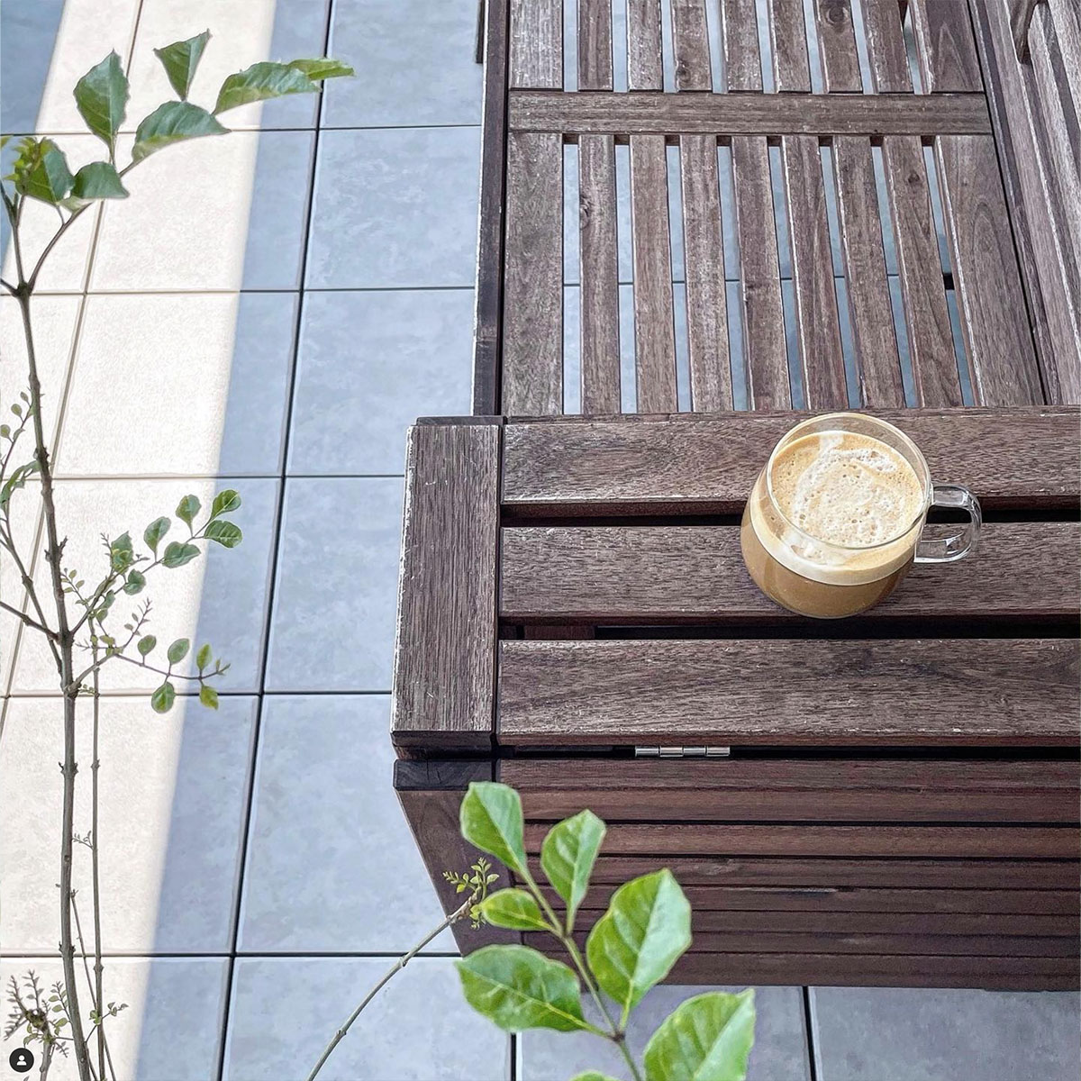 タイルを設置してからは、バルコニーに出る頻度が今までよりも増えたそう。時間のあるときは、バルコニーに置いたベンチに座って、お茶を飲みながらのんびり過ごされています。さらに、バルコニーを映える写真撮影のスポットとしても活用されています。