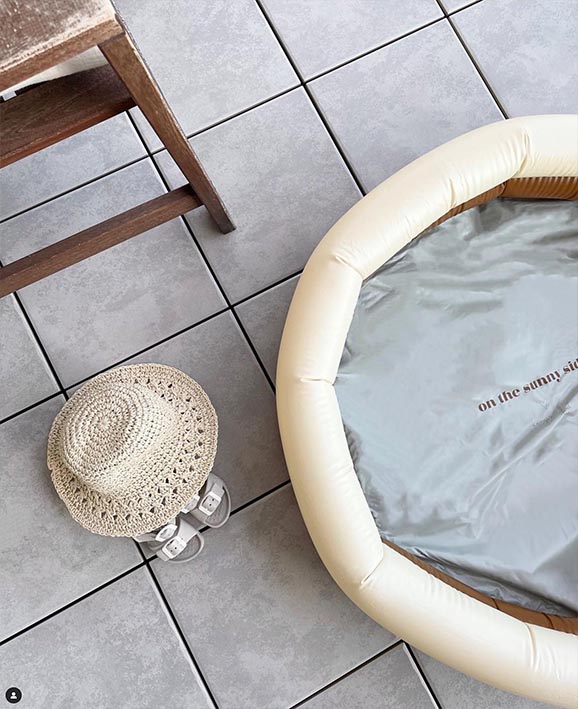 夏はお子様とおうちプールを楽しもうと、子ども用の小さなビニールプールも購入されました。バルコニーに置かれたビニールプールの写真も、奥様のセンスの良さが感じられるおしゃれな1枚に仕上がっています。