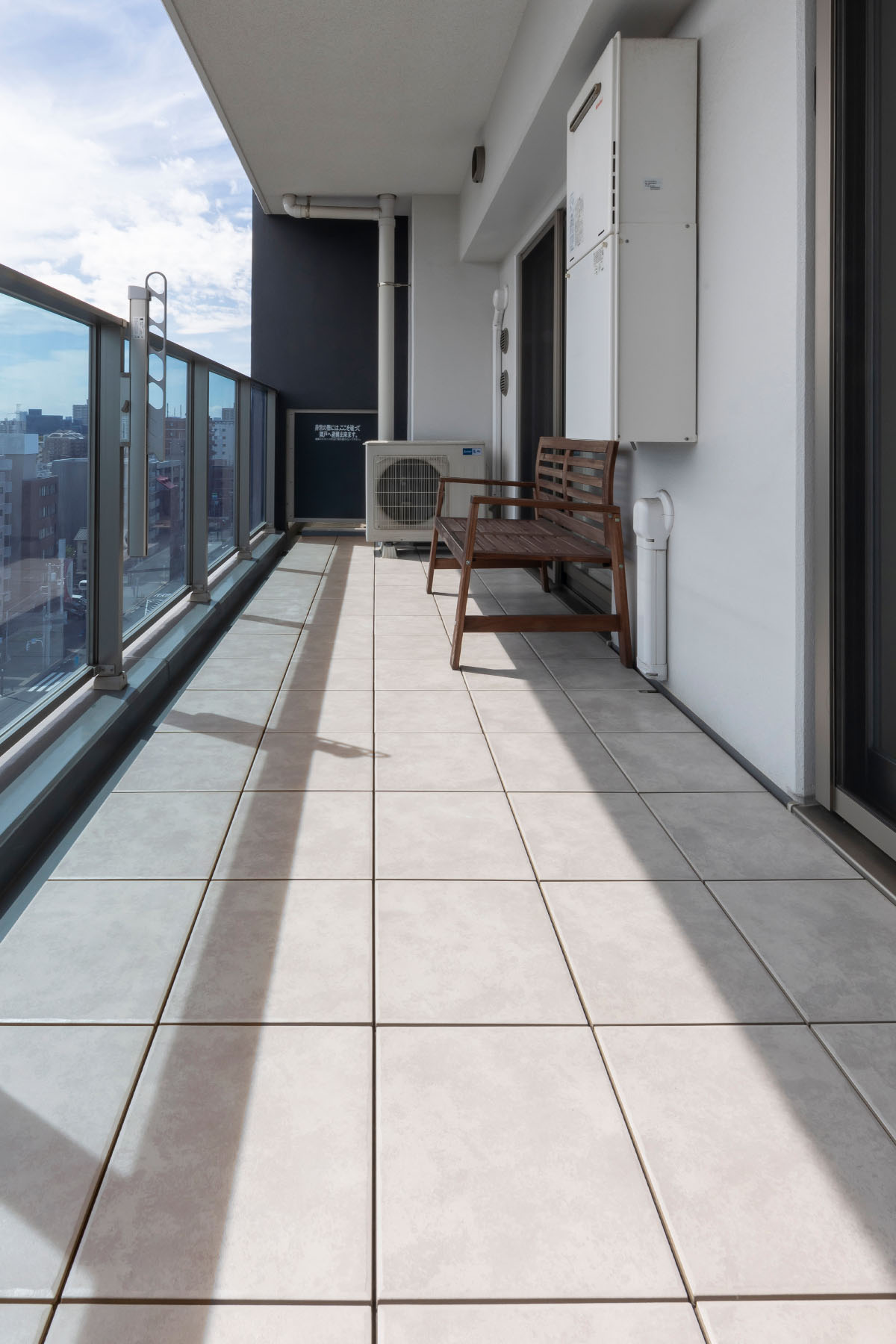 「市販のバルコニータイルをDIYで設置する方法も考えましたが、バルコニーの四隅まできれいに処理したり、カットしたりが難しそうなので、手は出しませんでした」と奥様。ご自身で施工して、万一、台風が来たときにタイルが飛散するのも心配だったことから、せっかくタイルを敷くなら安心できるものを選びたいと吟味を重ねられていました。