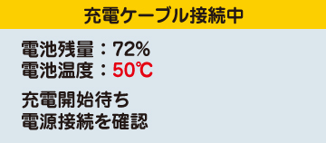 - ● 電池パックが高温の状態で充電器を接続した場合も、充電が開始されないことがあります。温度が低下するまで風通しの良い場所に置いてください。