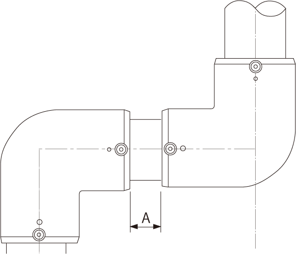 継手と継手の間は、クランプをかけられる寸法以上、離してください。