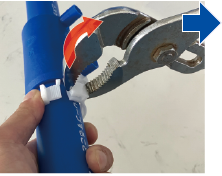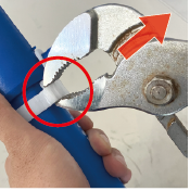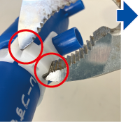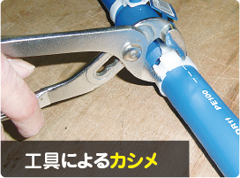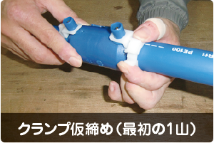 クランプの最初の1山を仮締めし、工具(プライヤー)でカシメてください。