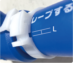 口径毎に寸法が異なります。カシメ後は管を軽く引っ張って管が抜けない事を確認してください。