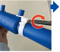 施工後、保温工事等の都合により、クランプを取り外す場合が生じた時の方法例を示します。尚、クランプ取り外し作業は従来どおり冷却時間を設けたのち実施してください。冷却時間は呼び径50以下で5分間です。