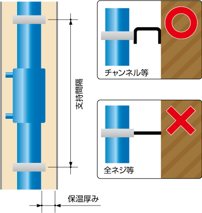 ※配管支持部はチャンネル等を使用して、しっかり固定してください。