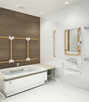 「wells」はご利用者さまの個別の身体状況の変化に優しく寄り添う可変性を持った浴室です。 介助者もご利用者さまも安全で 長期的に利用可能な入浴空間を実現します。 経営効率をアップする多彩な仕組みで、サービスの質の向上と経営の安定を両立します。
