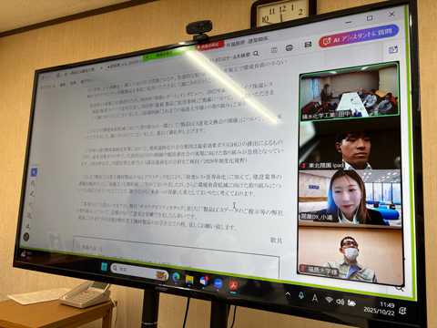 この度、福島大学様とエスロンタイムズ特集ページ「最新 製品ご採用事例」へのサステナビリティ貢献製品のご採用事例の掲載についてやりとりをさせていただく中で、LCAに関する意見交換会を開催することになりました。