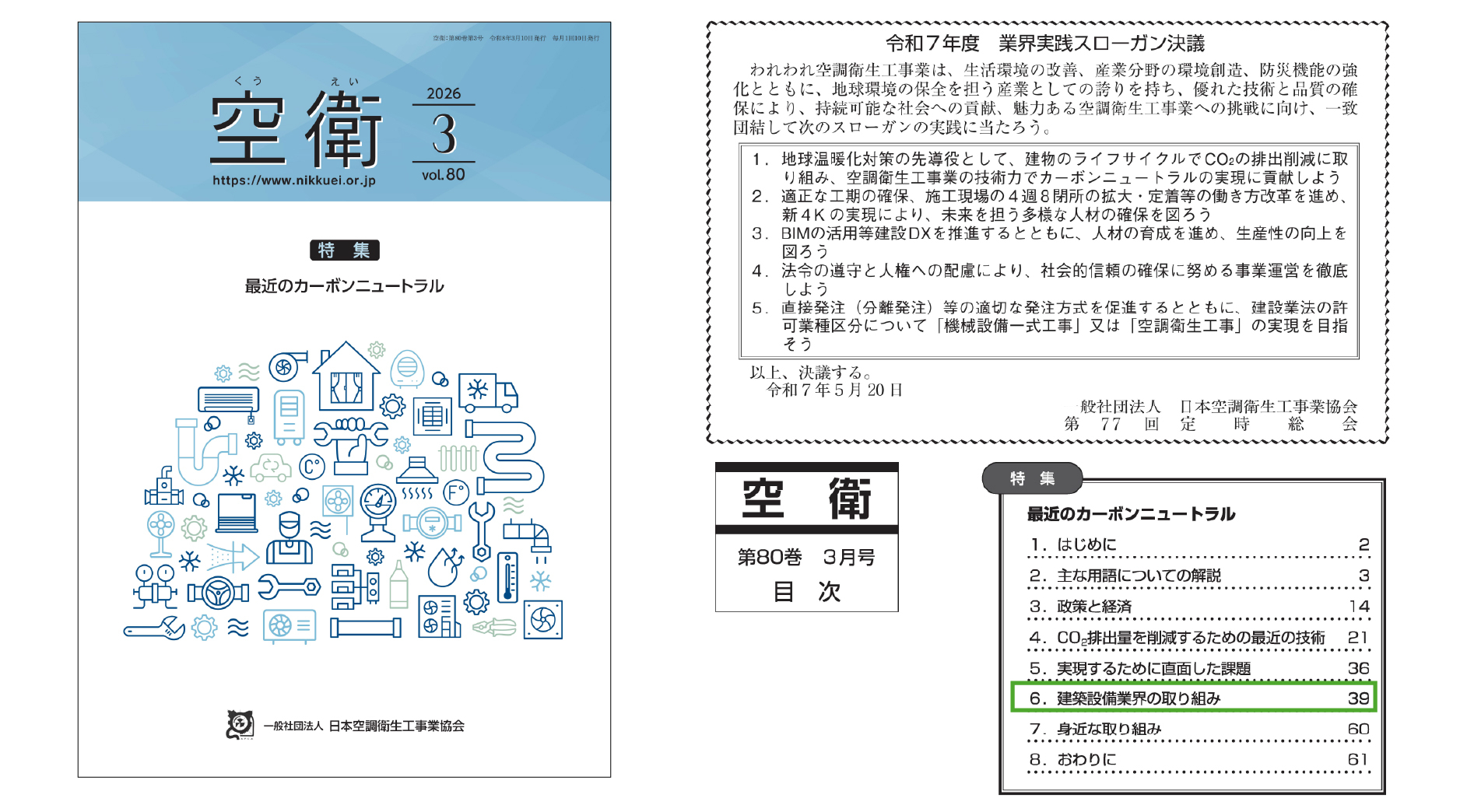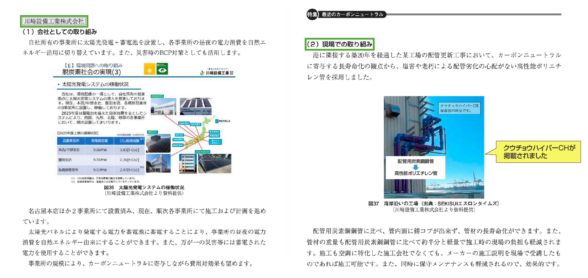専門誌「空衛」2026年3月号「特集 最近のカーボンニュートラル」において、川崎設備工業様の現場での取り組みとして掲載されました。