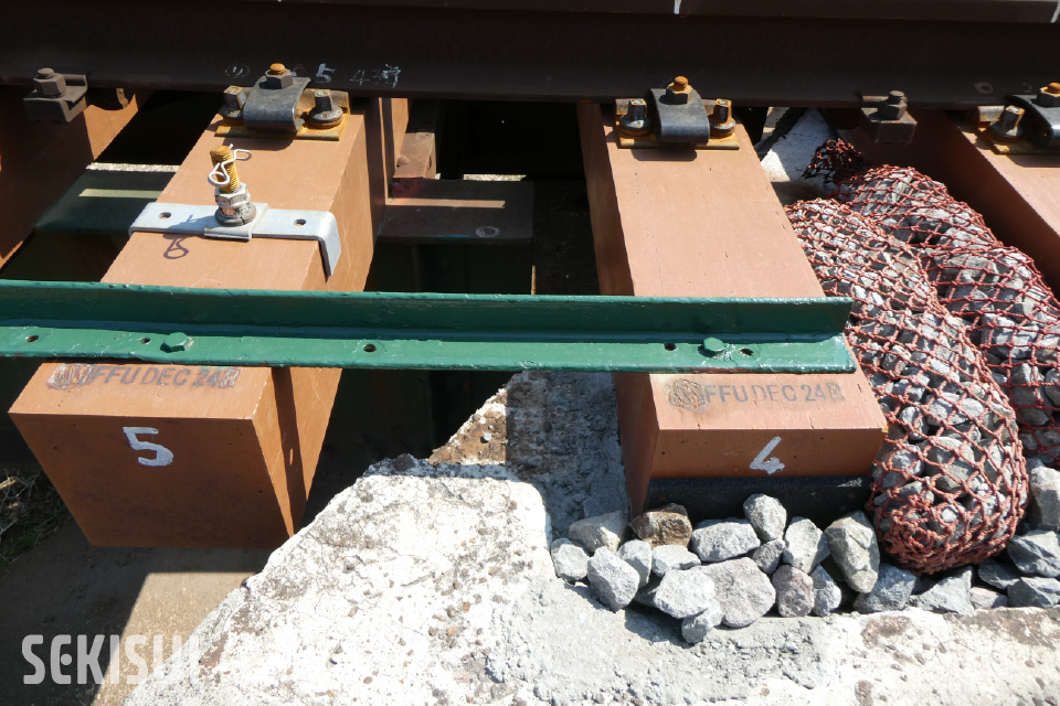 藤井様 : 最初は1995年頃、私が⼊社して間もない頃でおぼろげなのですが、積⽔化学さんのFFUを採⽤しました。本数は少ないですけれど、分岐器のモーター部が設置される⻑さ3700mmの枕⽊で、⽊製では腐ってしまったり緩みになったり⽀障が出るのです。そういう箇所から試験的に使⽤したのだと思います。